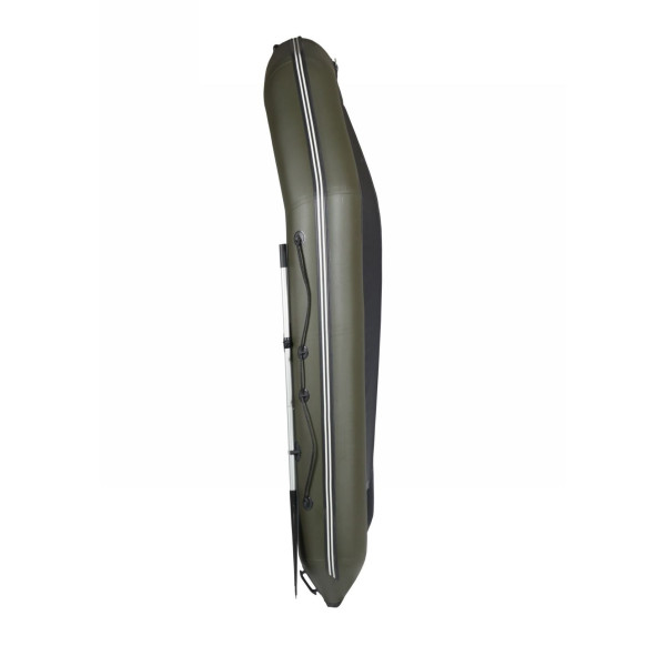 Баллон Лоцмана М 320 имеет оптимальный для габаритов лодки диаметр – 39 см и традиционную для моторок U-образную незамкнутую форму. Внутри герметично разделен на три отсека. Плюсом идет еще одна воздушная камера – надувной киль, он приклеен к днищу и усилен по всей длине лентой ПВХ. Каждый элемент накачивается отдельно. В случае пробоя на воде или прокола одного, три других не дадут судну пойти ко дну. Повышение плавучести сказалось и на грузоподъемности, данная модель может взять на борт вес до 400 кг.